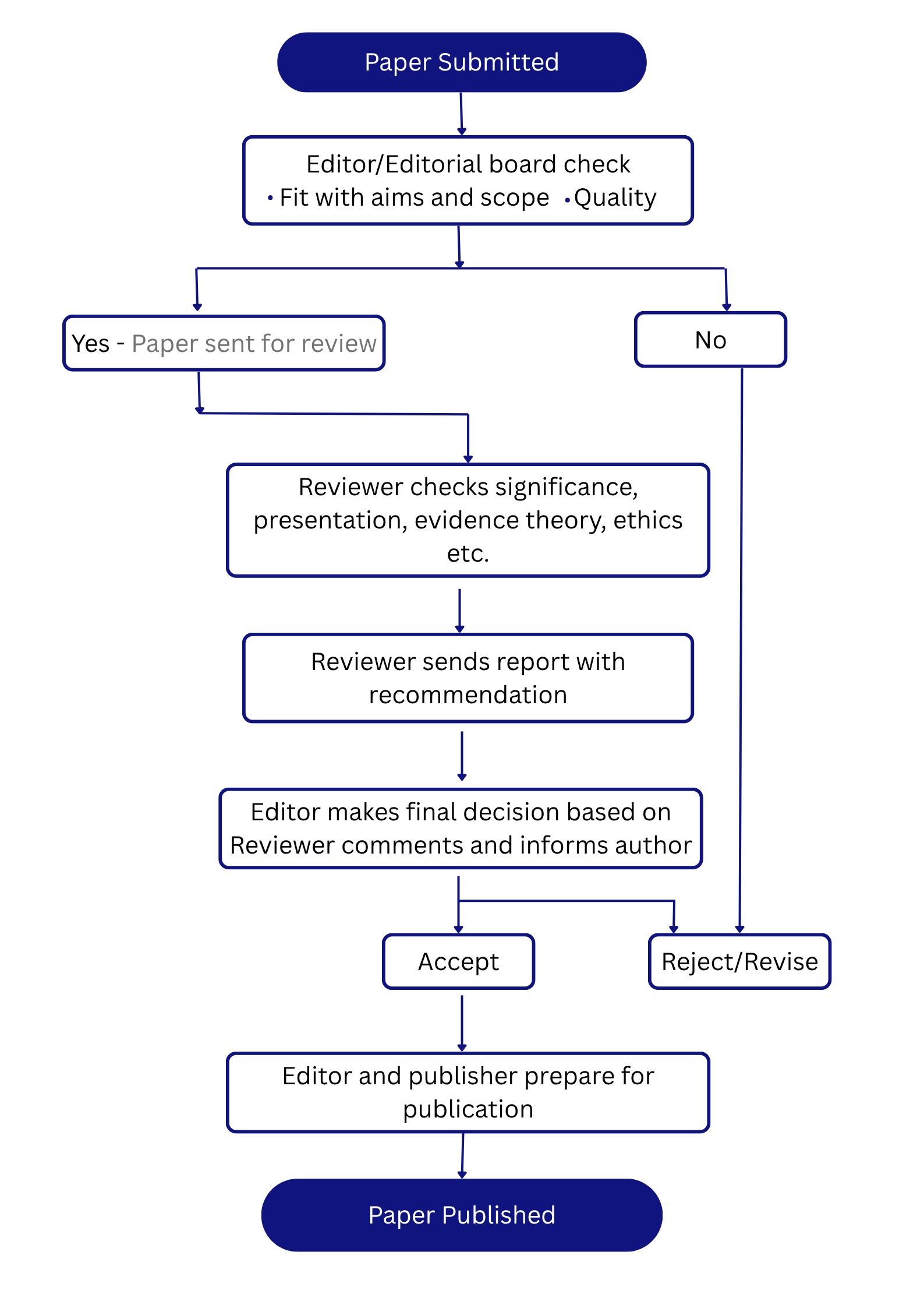 The American Journal of Psychiatric Rehabilitation follows a structured double-blind peer review process to maintain high standards of academic integrity, quality, and transparency in scholarly publishing. The steps involved in the review process are visually illustrated below: